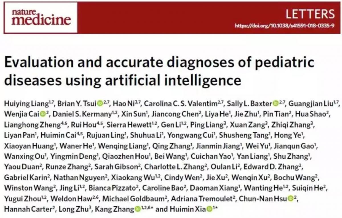 北京时间2月12日,世界顶级医学科研期刊《自然·医学》(Nature Medicine)在线刊发题为《使用人工智能评估和准确诊断儿科疾病》的医疗人工智能成果。