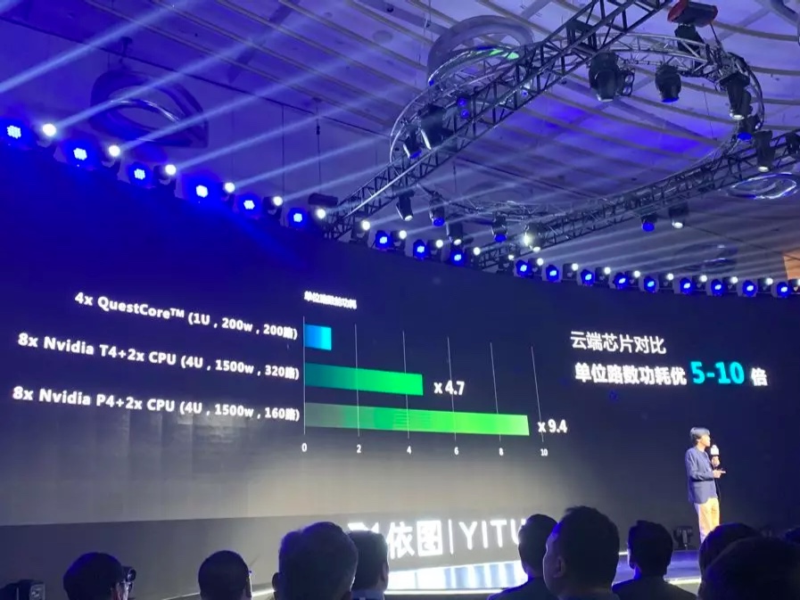 朱珑认为,正是芯片单位面积的智能算力的「斜率」优势奠定了依图芯片能在最终性能表现超过巨头英伟达。