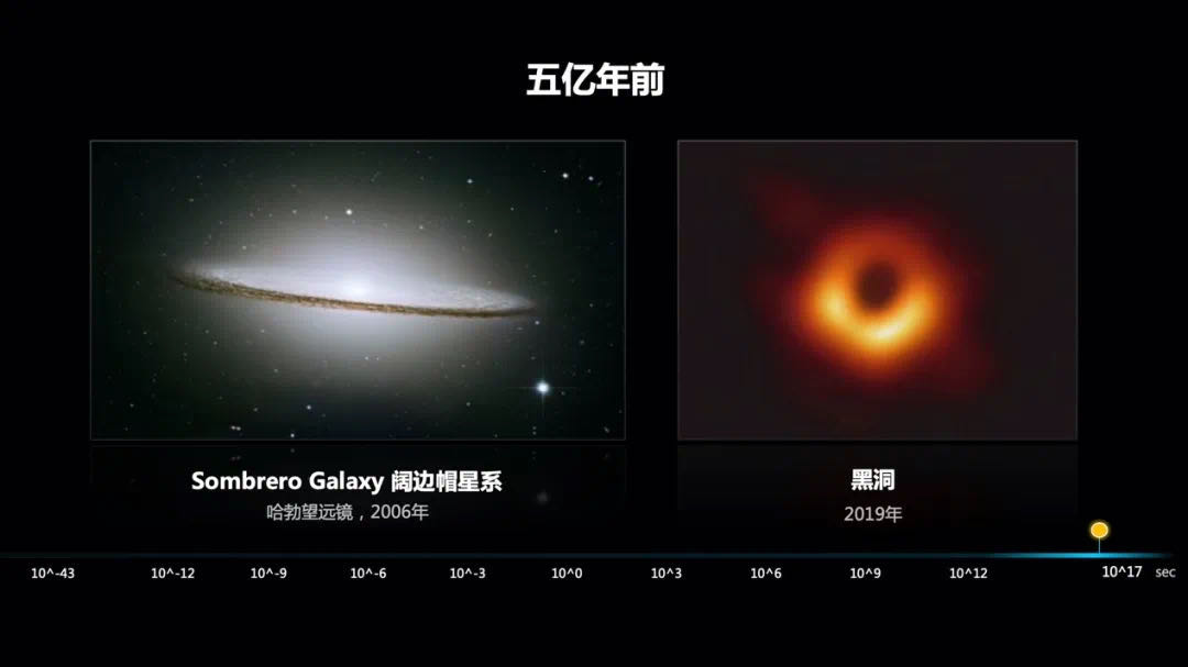 人类拍到了宇宙中人类能够观测到的五亿年前的世界。从时间轴而言,这是非常遥远的过去。这也论证了从非常微小的世界到非常遥远的世界,人类都能够观测到。那么现在,以此时此刻为中心,往前30年是信息时代,往后是未来的30年。我们看到了过去的30年发生了什么,也可以预测出未来的AI时代会发生什么。
