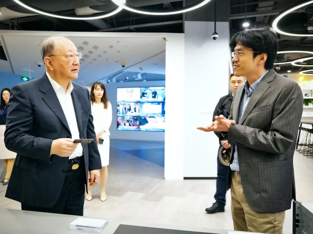 徐匡迪院士细心询问了依图在推动人工智能算法与芯片深度耦合等方面的创新探索。对于依图在AI芯片领域实现了自主可控,并基于先进的芯片设计和世界级算法承建了视觉计算国家新一代人工智能开放平台,徐匡迪院士表示感到欣慰。